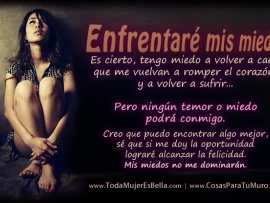Es cierto, tengo miedo a volver a caer, que me vuelvan a romper el corazón, y a volver a sufrir... Pero ningún temor o miedo podrá conmigo. Creo que puedo encontrar algo mejor, sé que si me doy la oportunidad lograré alcanzar la felicidad. Mis miedos no me dominarán.